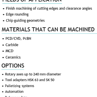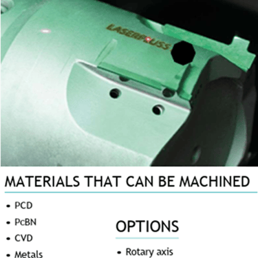 Elmas takımların işlenmesi, son derece dinamik parça konumlandırma ve sezgisel kullanıcı yazılımı için özel olarak geliştirilen lazer teknolojisi, RayCutter serisinin temelini oluşturur. Sıfır noktası sıkma sistemi sayesinde, makine kesici uç işlemeden yuvarlak işleme (döner eksen) kadar hızlı ve doğrudan değiştirilebilir. Sistemin temeli, tüm hareket eksenlerinin termal stabilite ve en yüksek hassasiyetle monte edildiği sağlam bir granit taban tarafından oluşturulur. Standart olarak makine 4- Eksen ile sunulmaktadır. 5 Eksenli işleme, döner bir eksenle genişletilerek mümkündür.