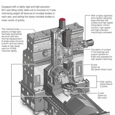 Yeni geliştirilen tabla ünitesi, DD motorları ve yüksek rijitlikli rulmanlar kullanarak, yüksek hız ve yüksek hassasiyetli işleme, zor kesilen malzemeleri kesme ve güçlü bir tahrik kuvvetiyle ağır kesim için üstün kapasite göstermektedir. Ayrıca, son derece hassas rotasyon ekseni kontrolü sayesinde boşluksuz çalışma ve hızlı tepkili işleme olanağı sağlamaktadır.